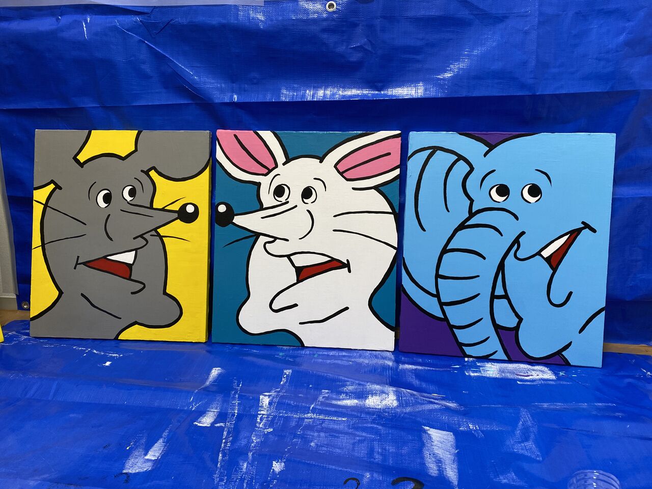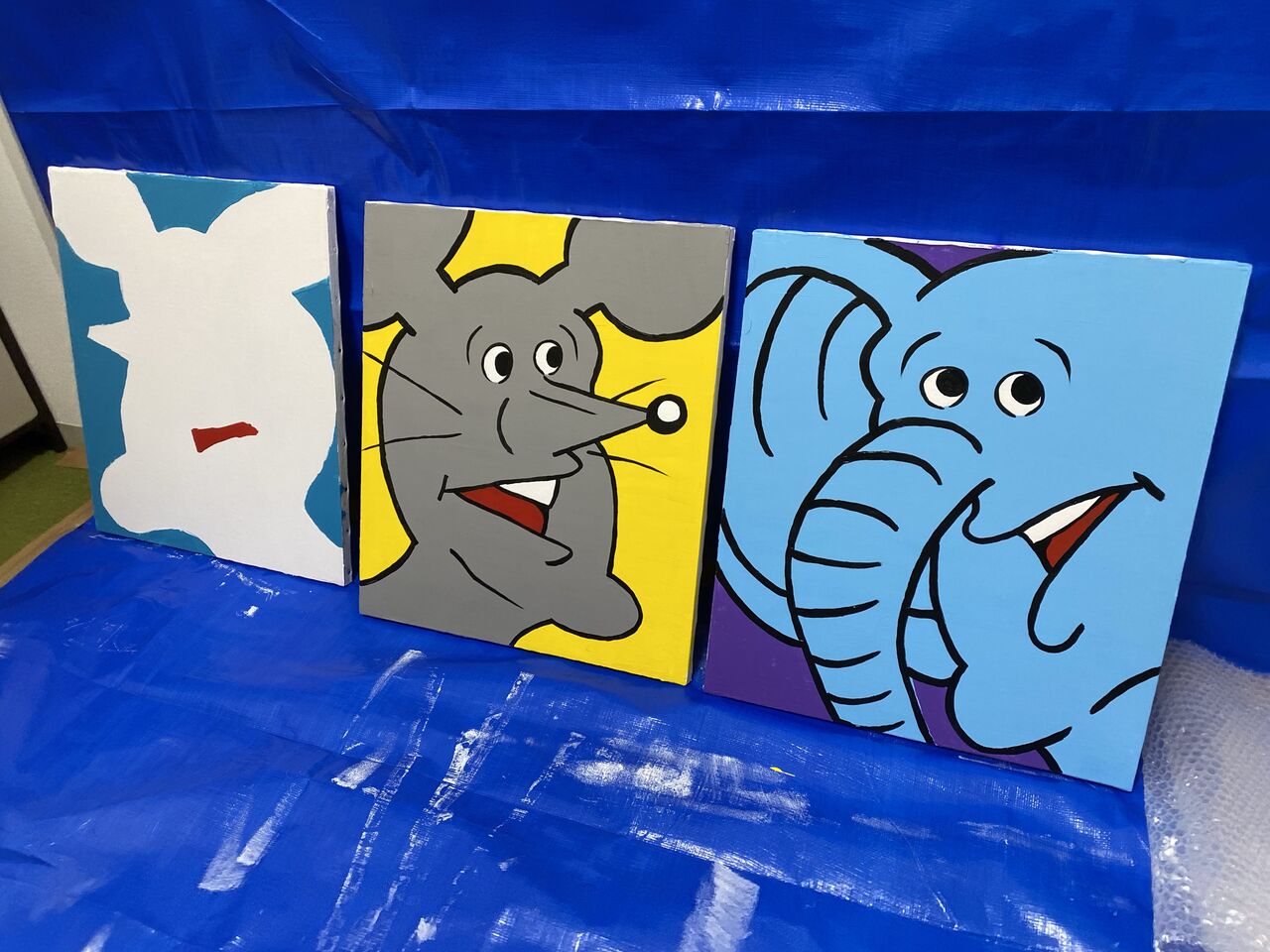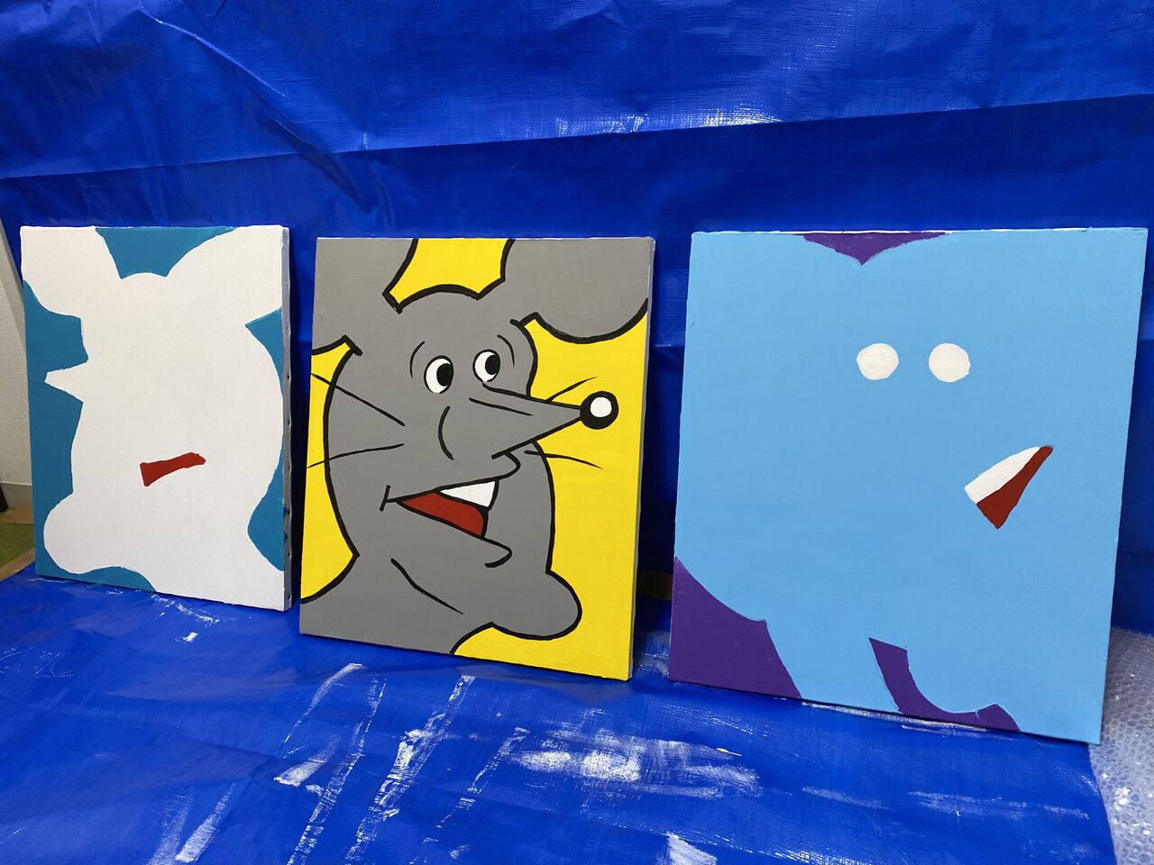 アザラシと、うさちゃんとくまを描いた。