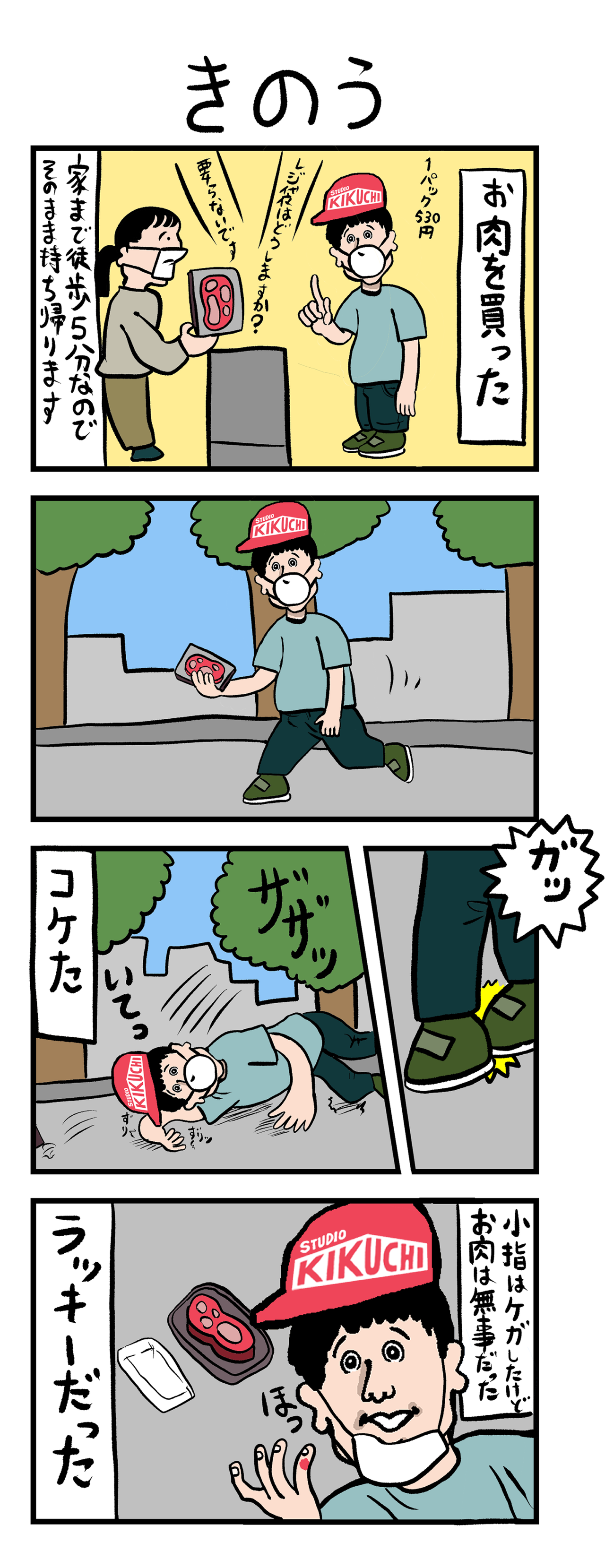 あんな派手目にコケたのなんて何年振りだろう。 コンクリートの地面にジャリっと擦り剥きました。 一夜明けたいまも小指がヒリヒリする。 幸いにもお肉は無事。 上蓋が外れただけで、お店に並んでいる時と 寸分変わらず無事だった。 ラッキーっ! 帰ってフ ...