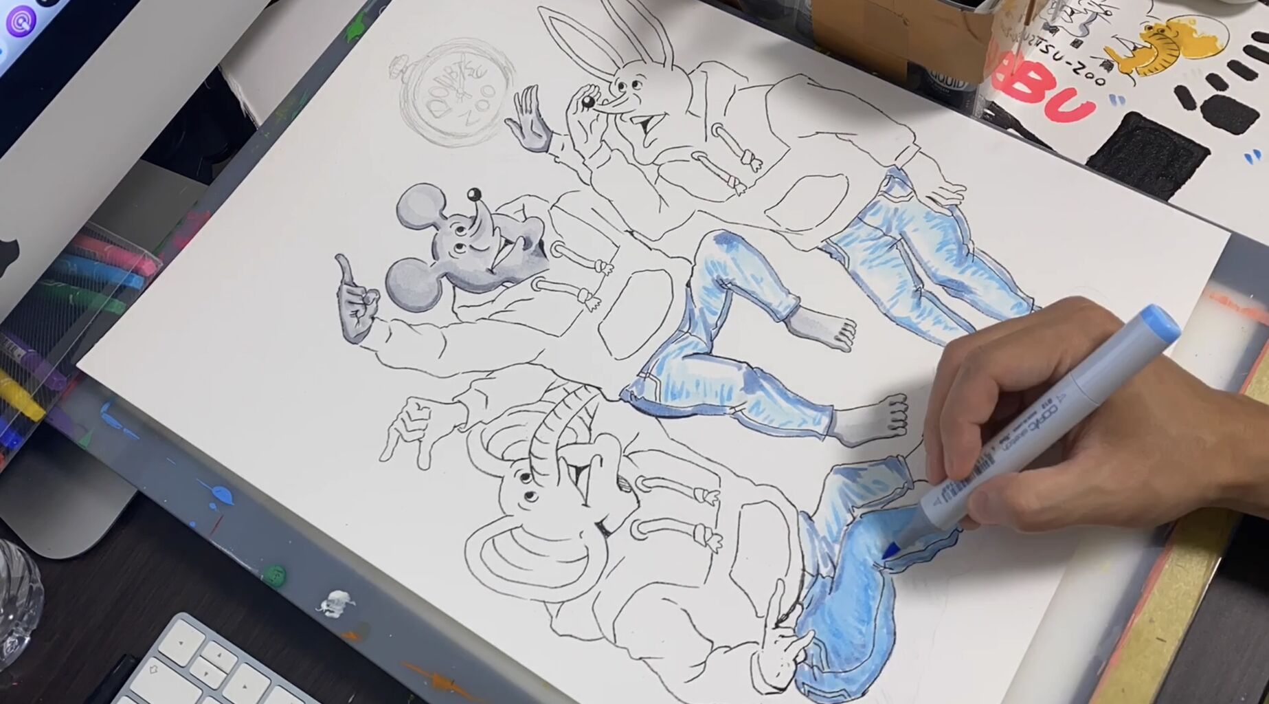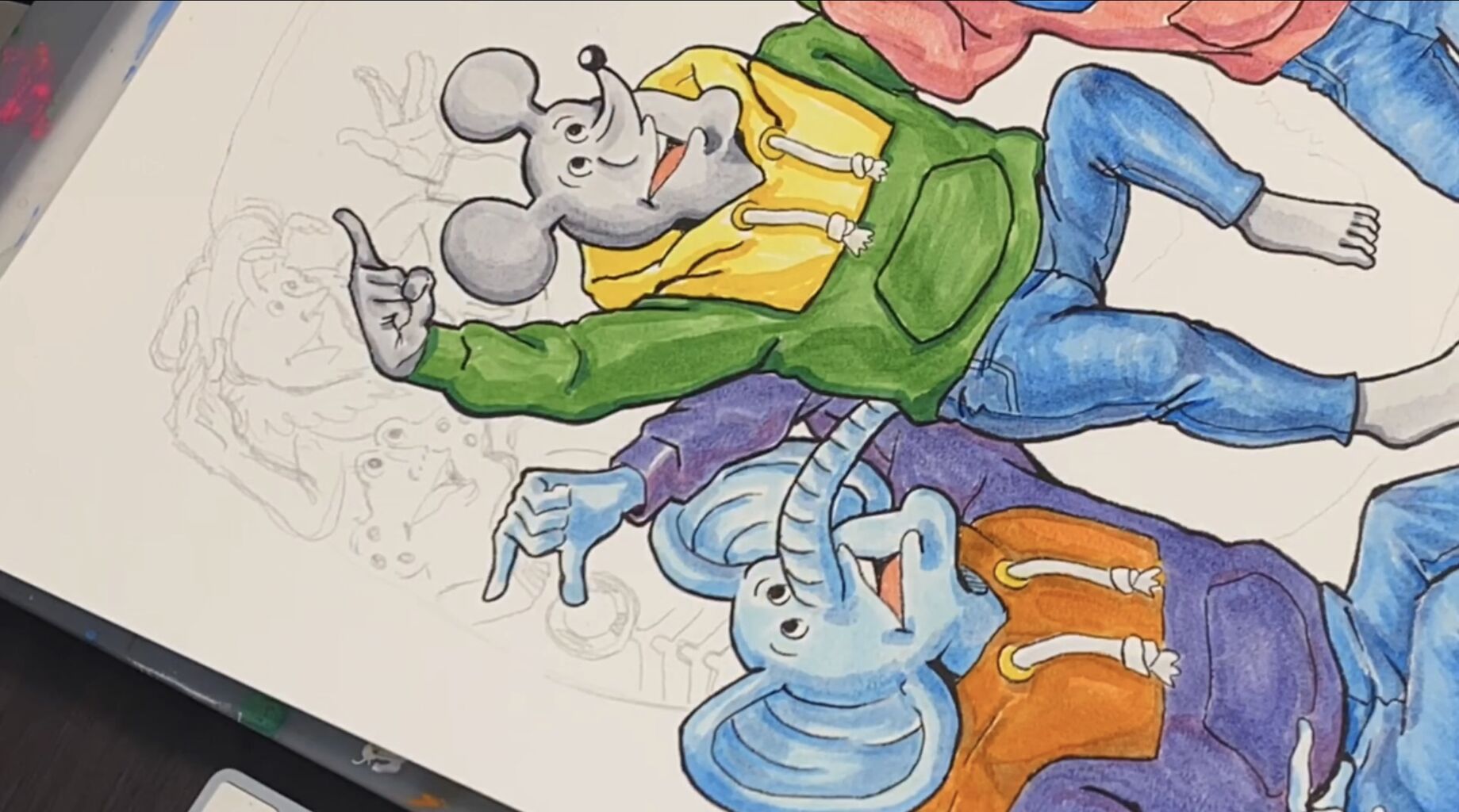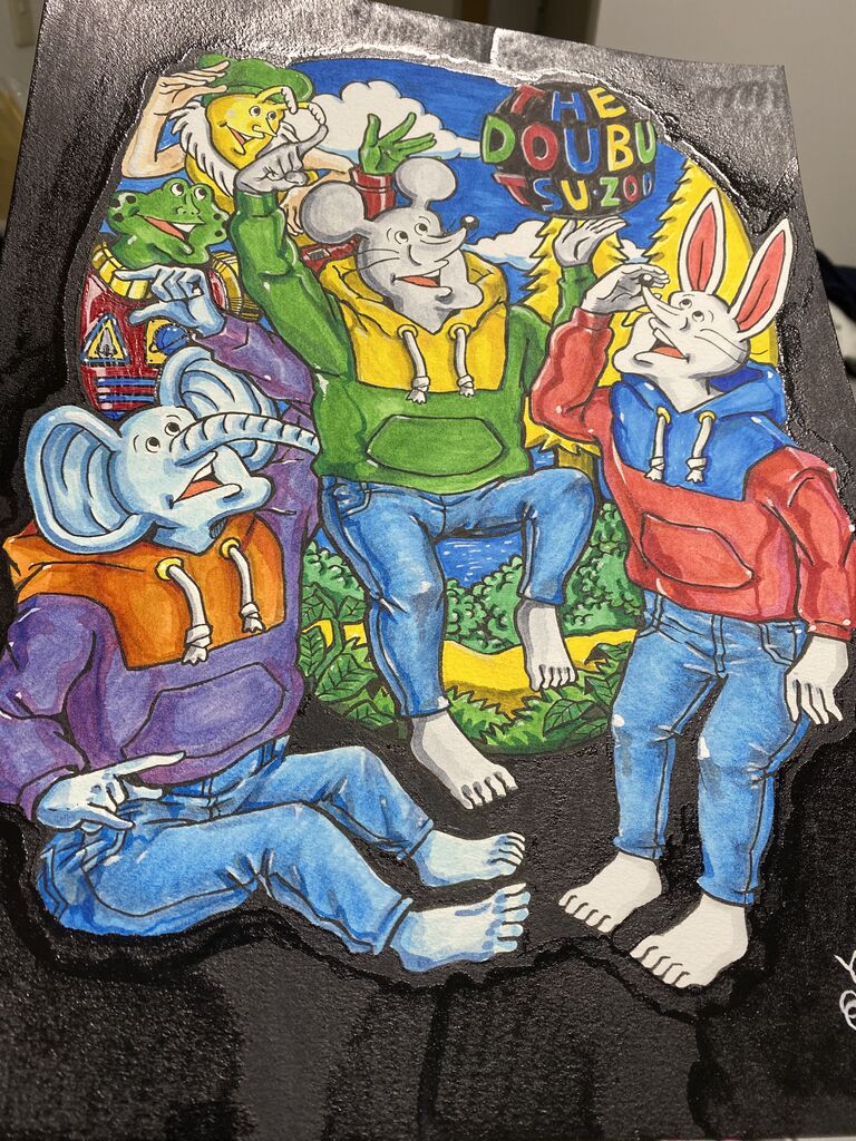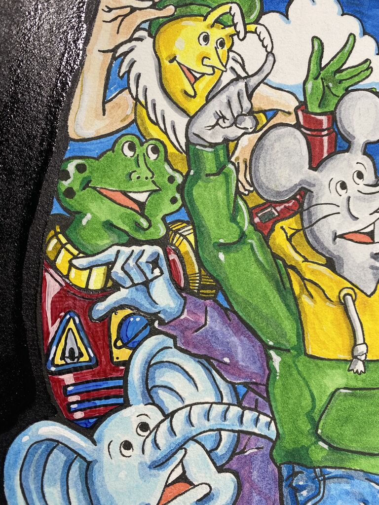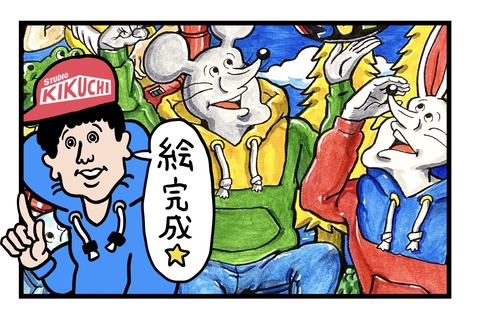 絵が完成しました⭐︎ これです。 良いの描けました。 お気に入りはカエルのペドロの服装です。 コミック版でペドロがオシャレして着ていたやつを、バージョンアッ ...
