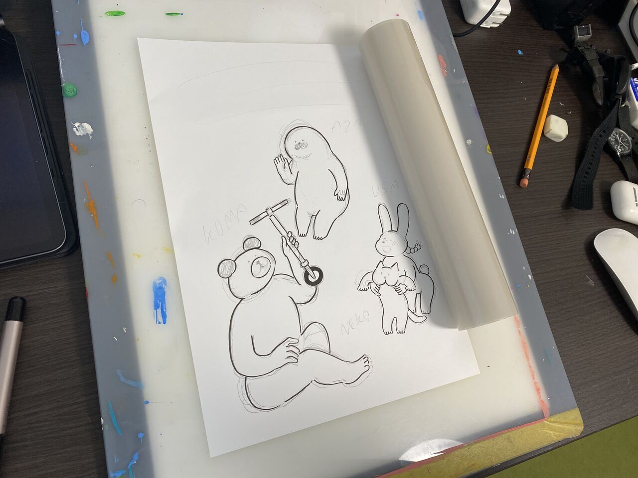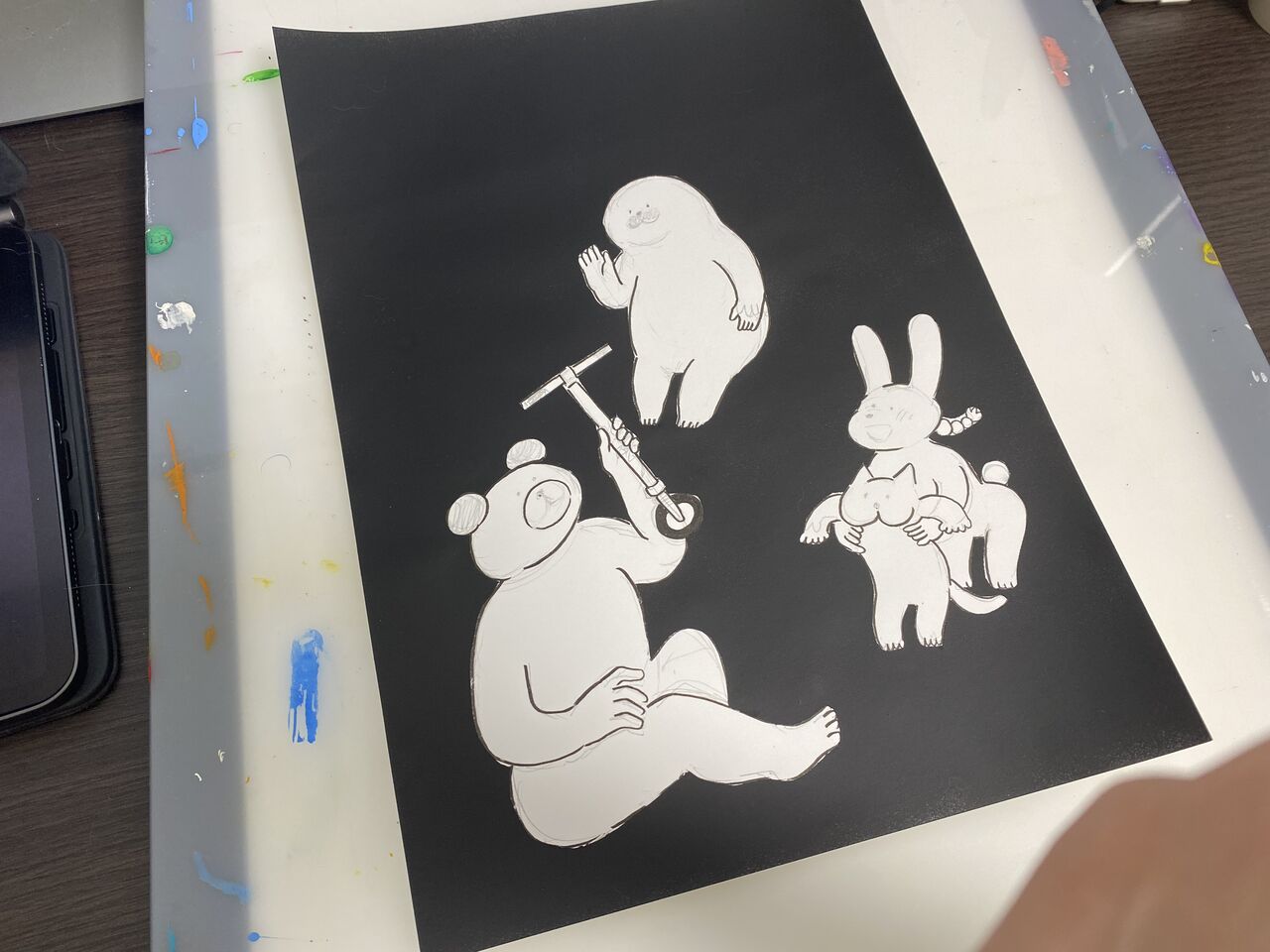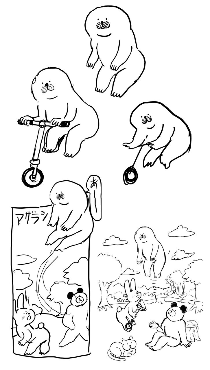 今日はこのほかに飛んじゃうアザラシの漫画を描いていました。