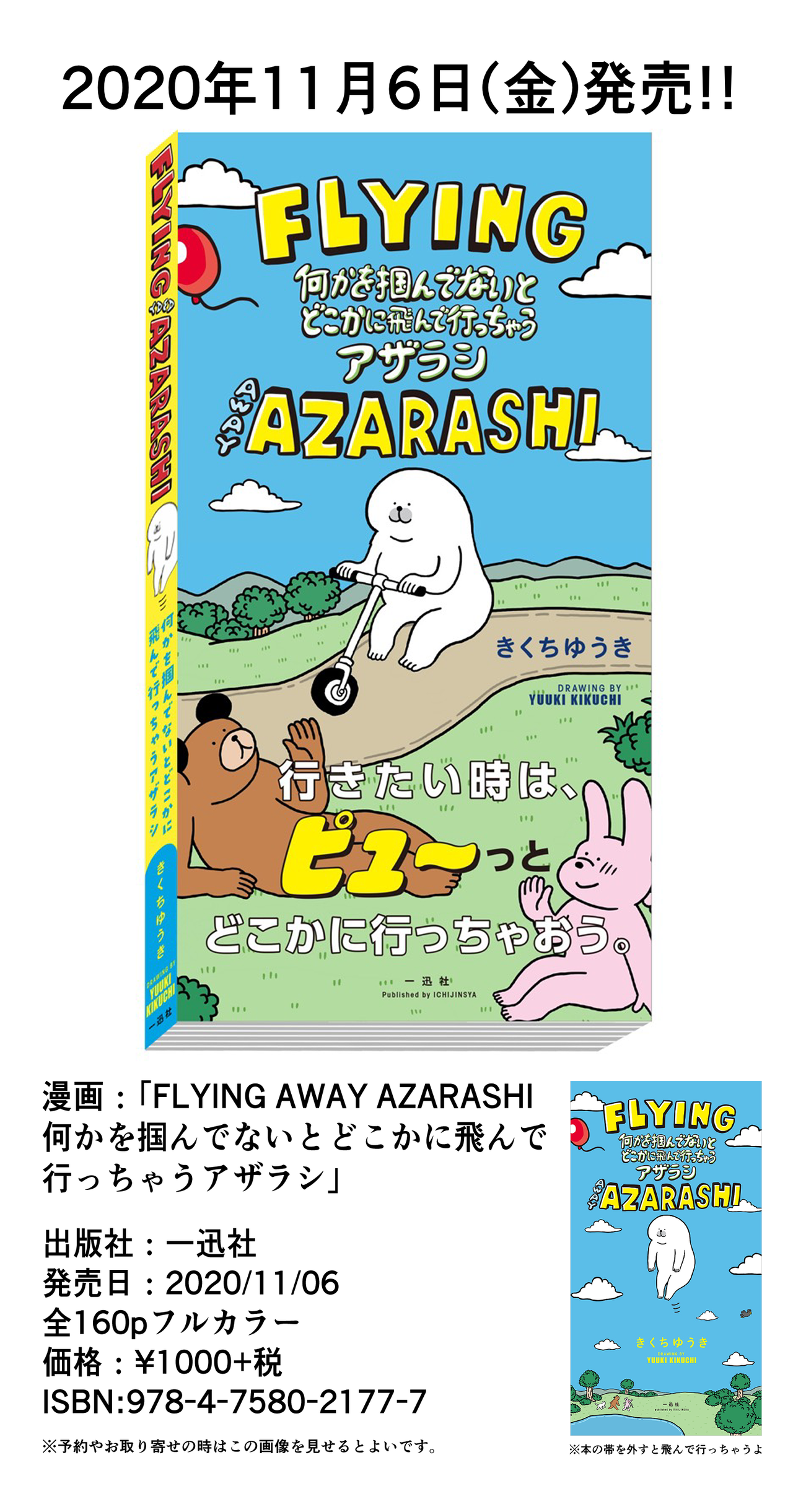 「FLYING AWAY AZARASHI 何かを掴んでないとどこかに飛んで行っちゃうアザラシ」の単行本が11月6日に発売することになりました!☝️