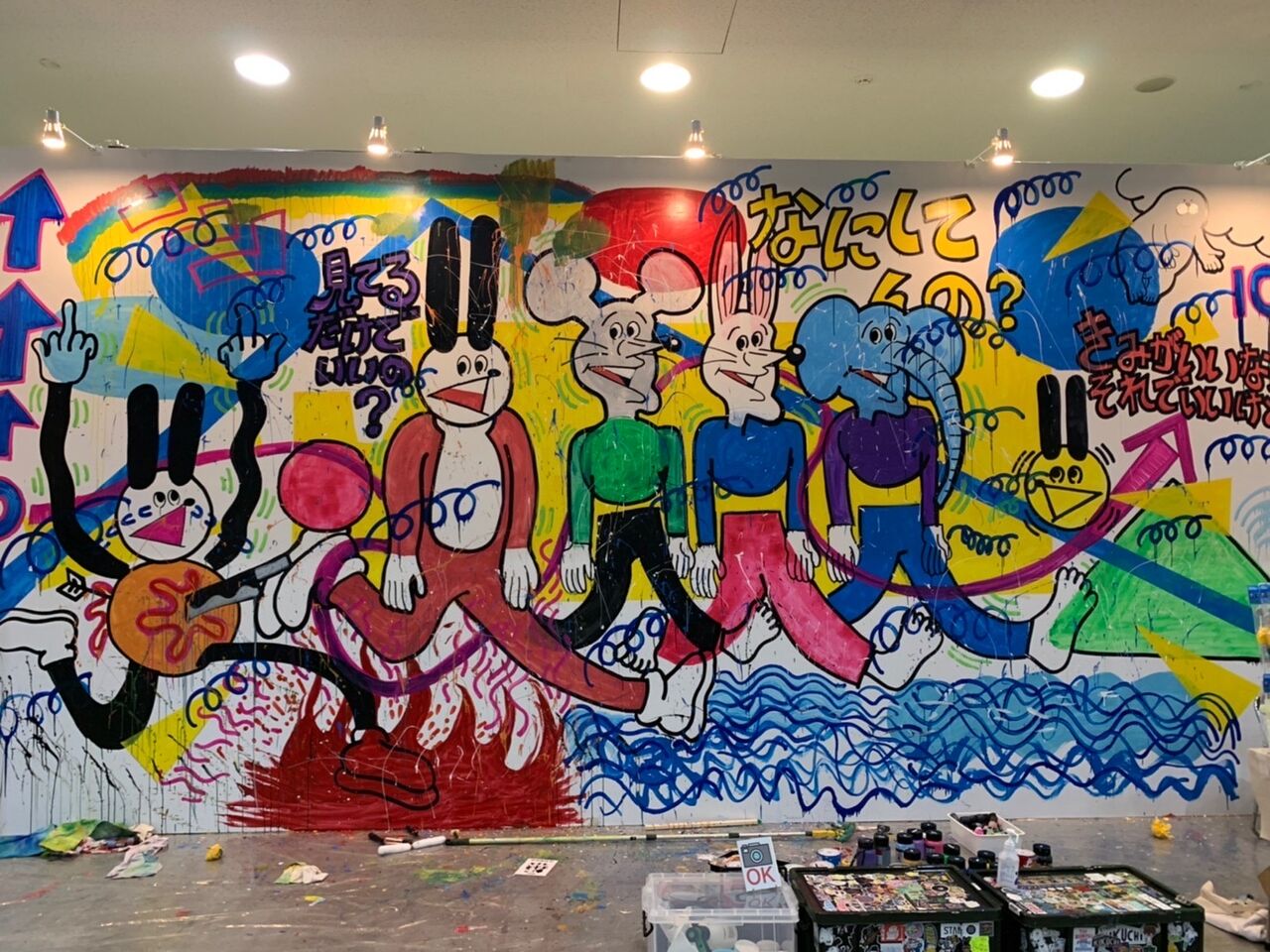 「デザインフェスタVol.55終わり」 終わりましたデザインフェスタVol.55 巨大ライブペイントブースに出展。 二日間で最終的に描きあげた絵はこちら。 描き進めて行くうちにあーしようこーしようと組み上がっていって 変化していく過程込みの作品 「始まり、終わり。そこからまた始 ... 続きを読む 2022/05/28 終わりましたデザインフェスタVol.55 巨大ライブペイントブースに出展。 二日間で最終的に描きあげた絵はこちら。 描き進めて行くうちにあーしようこーしようと組み上がっていって 変化していく過程込みの作品 「始まり、終わり。そこからまた始まってく。」 というよーな意味を込めました。 来てくれた方、見てくれた方、みんなありがとうございました! いつの時も、今がスタート地点。っつーことで、 またここからまたいろいろやって活動していきたい。 デザインフェスタ、また出ます! 平和が一番。 ではまた👋 ポチッと読者登録したら 更新通知がLINEで届くよ!!!👇